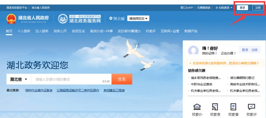 1、打开湖北政务服务网(http://zwfw.hubei.gov.cn/),找到注册登录。
