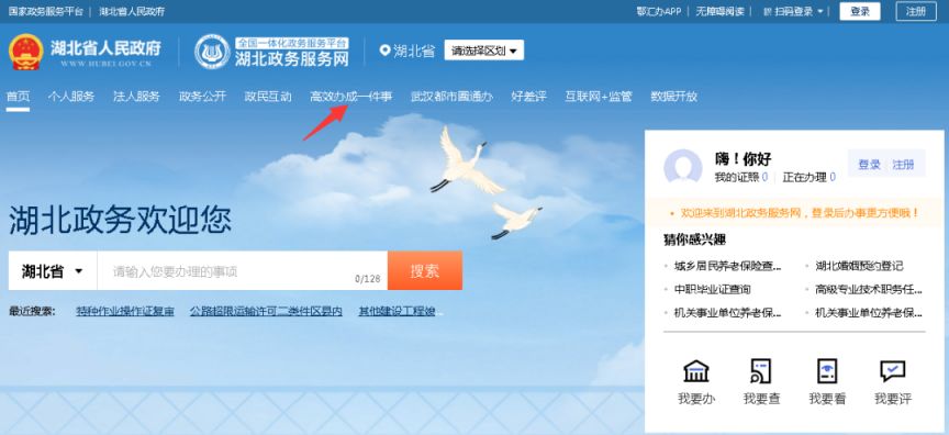 3、登录后返回首页选择“高效办成一件事”专栏,点击进入。