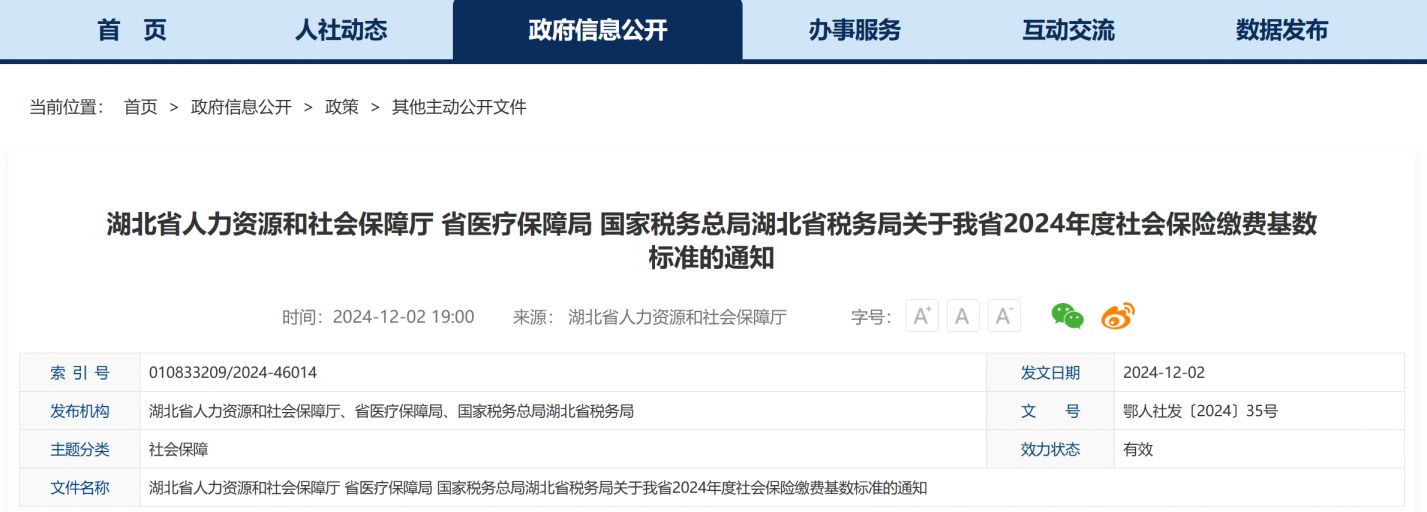 经省人民政府同意,现就湖北省2024年度城镇职工基本养老保险、职工基本医疗保险(生育保险)、失业保险、工伤保险(以下简称社会保险)缴费基数标准及个人缴费基数上下限通知如下: