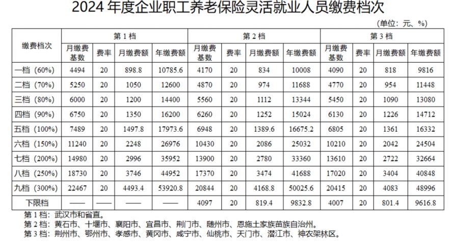 》》》2024年度企业职工养老保险灵活就业人员缴费档次:
