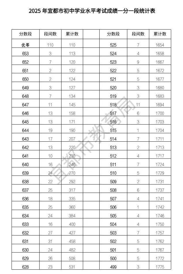 由于我无法直接访问实时数据或特定地区的教育政策信息,以下是对宜昌2025年中考一分一段表的一般性解析,以及高分分布和升学策略的建议。请注意,以下内容是基于一般情况的分析,具体数据需以官方发布的《宜昌2025年中考一分一段表》为准。