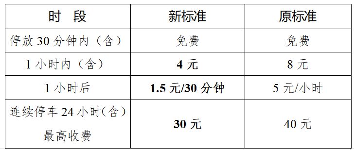 中小型车30分钟至1小时内(含)4元/辆,1小时后每半小时加收1.5元/辆,连续停车24小时最高收费30元/辆;