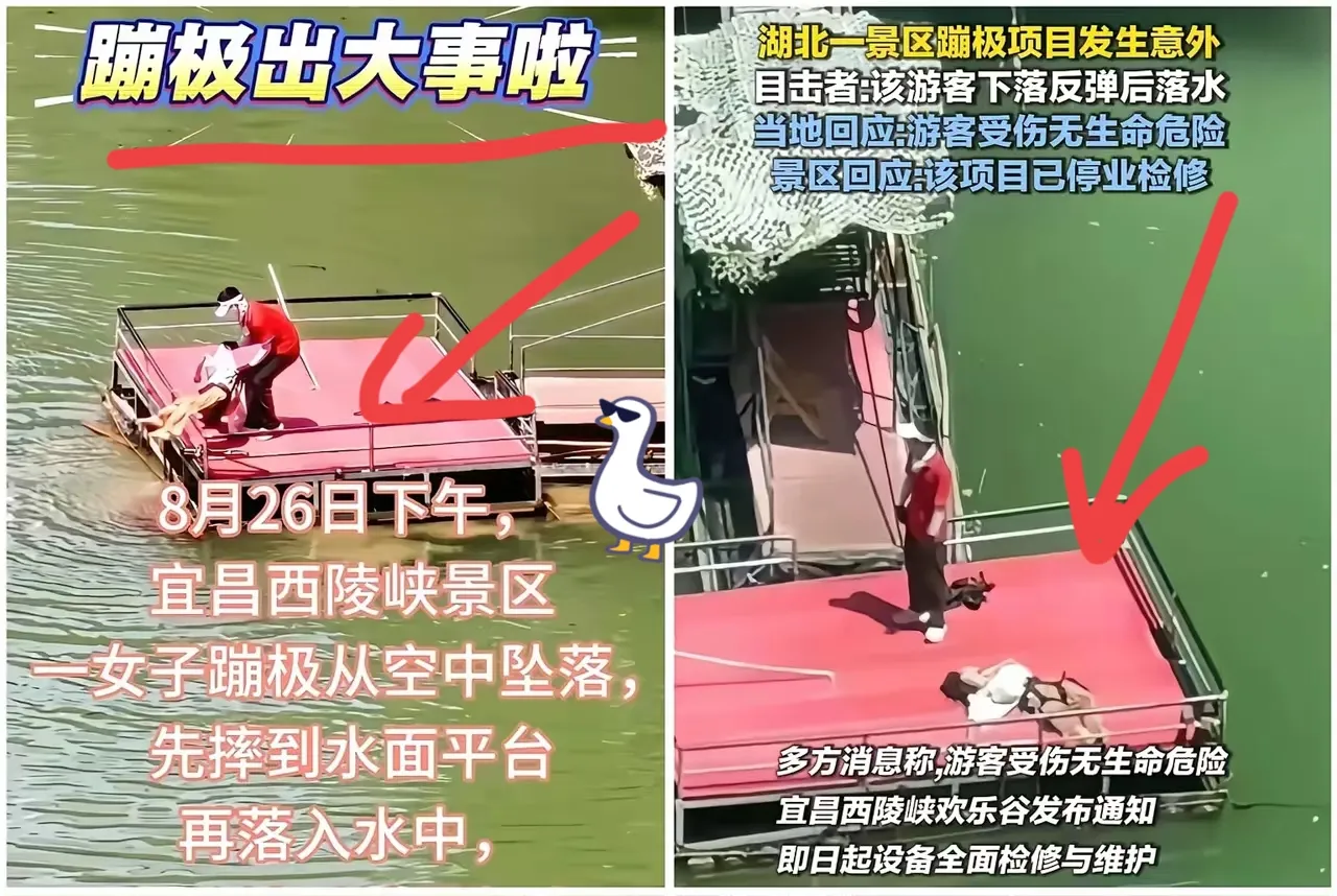 向平台后落水,腿部骨折变形、鲜血直流,这哪是刺激?简直是拿命玩“自由落体”!